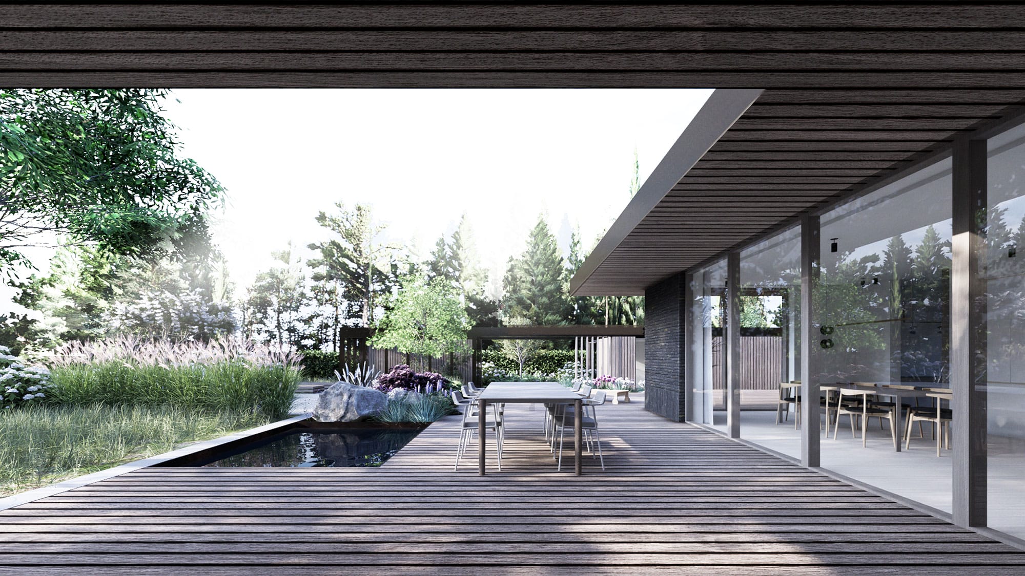 Huset er præget af en høj detaljegrad og nøje udvalgte materialer, der går igen inde og ude. Integrerede løsninger og en konsekvent materialeholdning skaber en samlet arkitektonisk helhed, hvor bygning og omgivelser bindes tæt sammen.