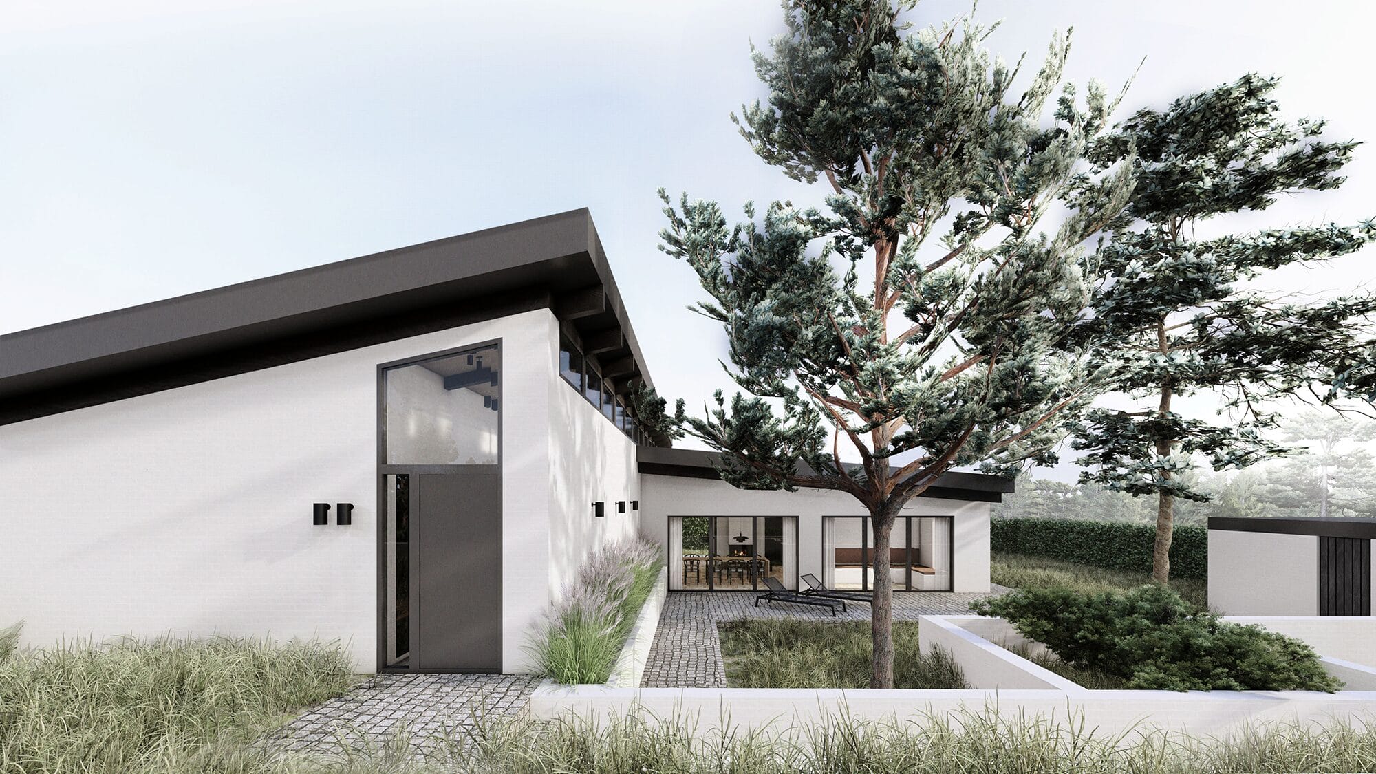 Bygningens forskudte niveauer er en direkte respons på grundens terrænfald og muliggør en organisk tilpasning til landskabet, mens der skabes udsyn mod vandet. Derudover ønskede kunden ikke et klassisk nybygget hus, men en mere traditionel plantegning med bl.a. køkken og stue for sig. I dette projekt er der ydermere lavet fuldt belysningsprojekt, haveplan samt designmanual af udvalgte rum.