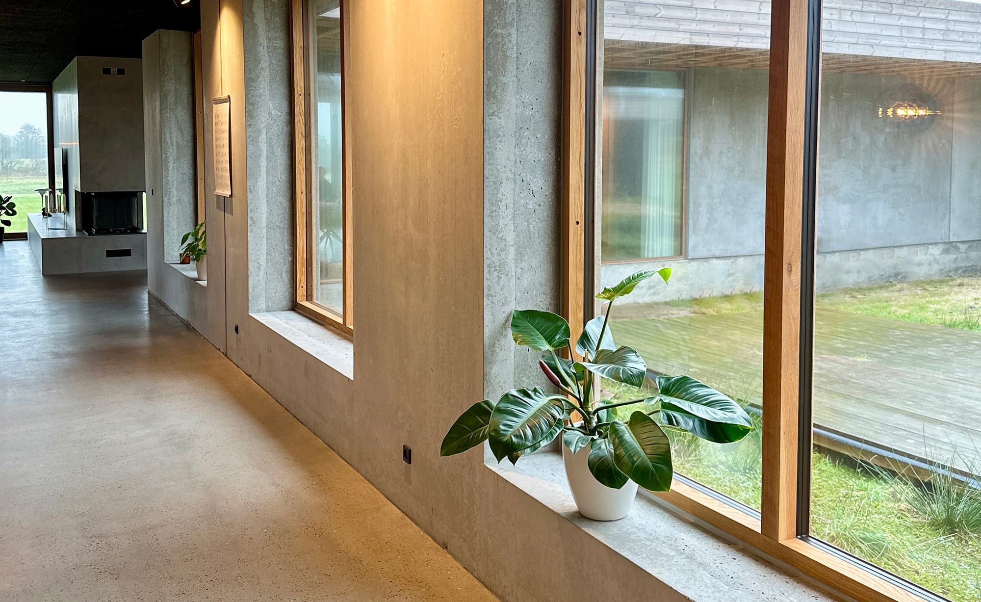 Villaens placering ligger indenfor et værdifuldt kulturmiljø ved Tjæreborg Enge, der ligger et stenkast fra vadehavskysten. Området er kendetegnet for sine store vidder. Villaen tager udgangspunkt i motivet fra den traditionelle trelængede gård og nyfortolkes med inspiration fra den nordiske minimalistiske byggeskik. Villaens formgivning og placering orienterer sig omkring solens akse og tilpasser sig behovet for lys i hvert enkelt rum. U-formen omfavner gårdrummet som skaber privathed og afskærmer sig fra støj og indkig. Hensigten med projektet er at indgå i en symbiose med det omkringliggende flade landskab og de vertikale linjer fra områdets træer.
